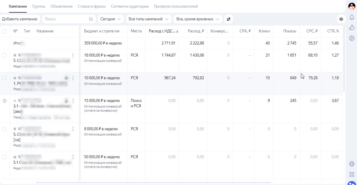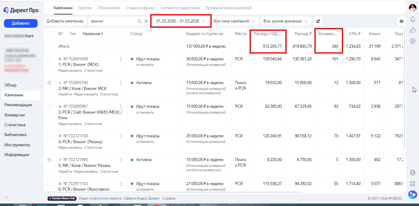 (запуск Рекламы в Яндекс)