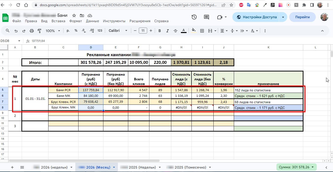 Потрачено - 301 578,26 руб. с НДС